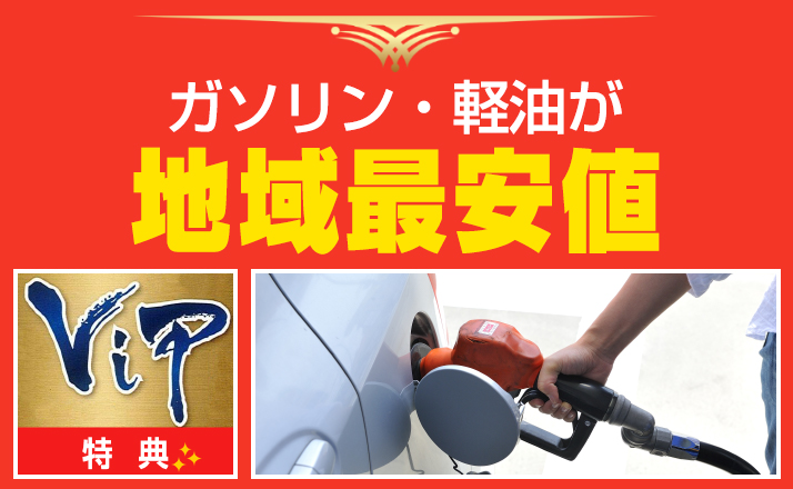 スタンドECO VIP会員になると、1リットル7円の割引サービス(月50ℓまで)の特典があり、地域最安値でガソリン・軽油を給油できます。ガソリン・軽油の価格は当ページ下の価格表をご参考にしてください。※最新価格は店頭看板でご確認ください。